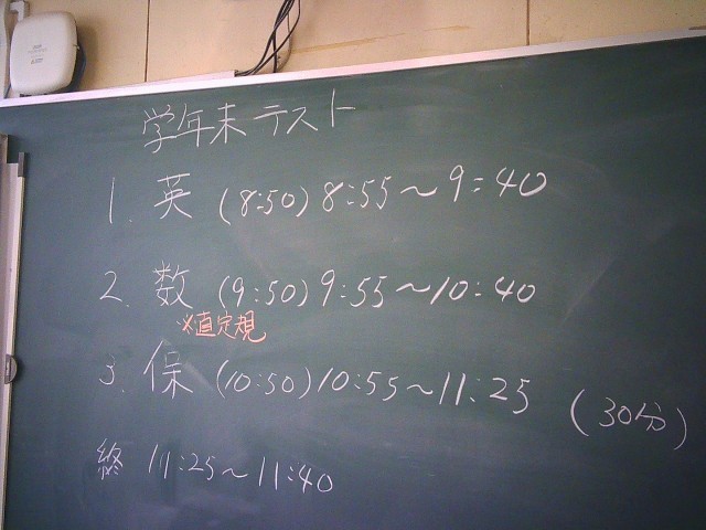 2/24(火),25(水),26(木)の3日間でおこなわれる1年間の総まとめのテストです。