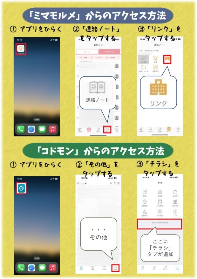 また、12月25日より欠席連絡等アプリ(ミマモルメ)とも連携させ、直接アクセスいただけるようになります。