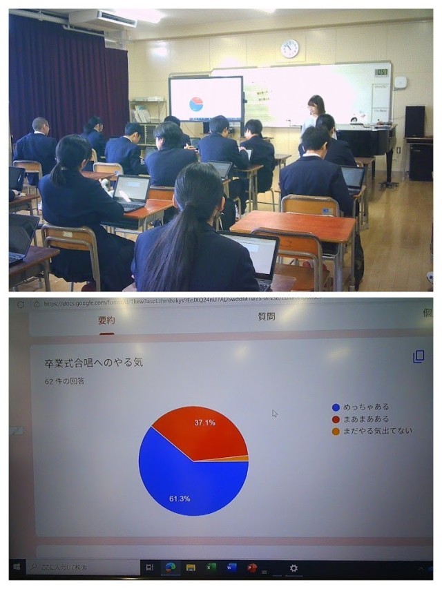 1限、2年1組と2年2組の教室では、練習をしていました。