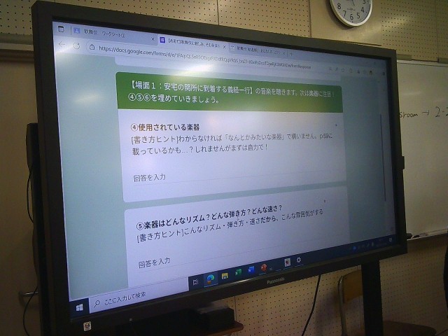 歌舞伎の勧進帳の鑑賞を学習者用端末を活用して授業していました。