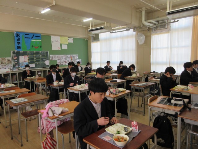 給食の時間にも係の生徒が来年度の修学旅行のことを決めています。