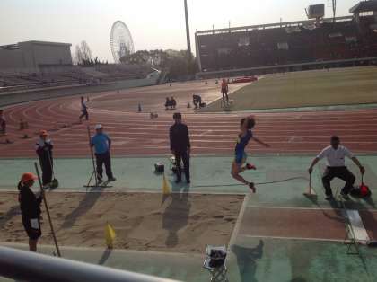 走り幅跳び2・3年生女子の部において、2年生の部員が優勝しました!!記録は4m83です。ジュニアオリンピックの参加標準記録には5m31なのでまだまだ足りませんが、これからの練習次第です!めざせ、ジュニアオリンピック!