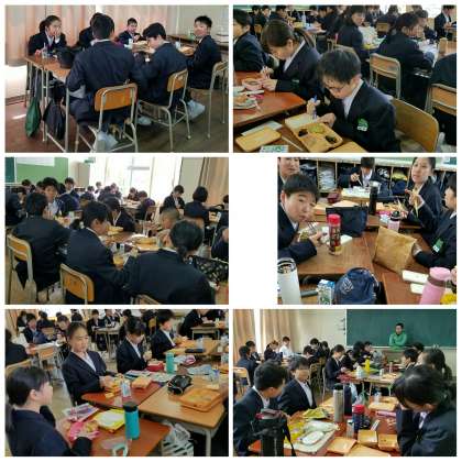 1年生の昼食風景です。みんな楽しそうに食べています。