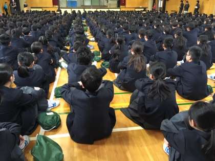 6時間め、体育館に全員が集まり、生徒会役員・学級委員の認証式を行いました。生徒会役員は、会長1名、副会長・書記・会計が各2名。学級委員は、学級委員長・風紀・保健・整備・文化・体育・図書の各委員2名ずつ。総勢245名の役員・委員の認証をしました。