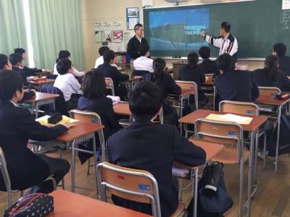 3年生の英語の授業では、C-net(ネイティブ会話の先生)とのティームティーチングで、画像を見てスポーツのルールを英語で学んでいます。