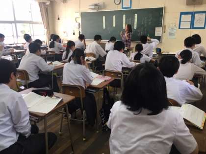 友渕中では、火曜日の6時間めの時間割りは「道徳」です。どのクラスも道徳の授業を行います。担任の先生がするという決まりではなく、学年の先生が持ち回りで受け持ちます。