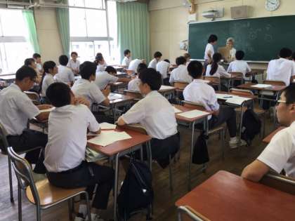 3年生の教室、ドキドキものやと思いますが、みんな笑顔です。