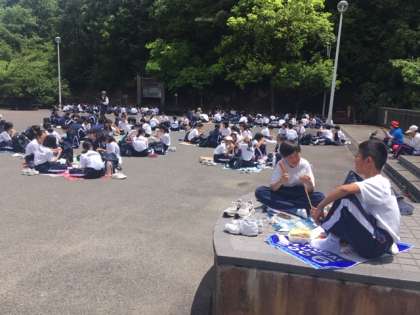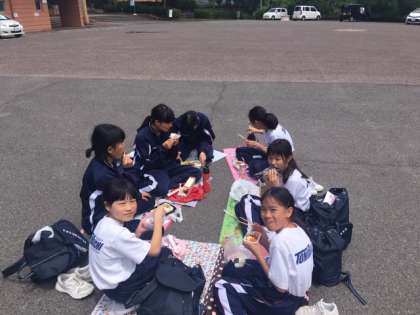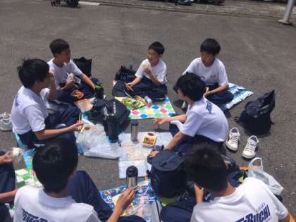 お昼が近づいたので、昼ごはんです。いい天気の中、それぞれグループでお弁当を広げます。まだ大したこともしてませんが、お腹がすきました。