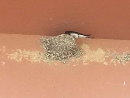 この施設は、毎年、この時期にはツバメが巣を作りに来ています。今回も、たくさんツバメが子育てをしています。