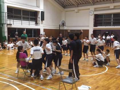 時間がなくなり、準備していた2つのゲームはカットして、「踊りこなすぞ!ダンスバトル」を最終ゲームにしました。流れてきた音楽に合うダンスを即興で踊り、審査員にアピールをします。2クラスずつバトルして勝ち残った3クラスが決勝バトルを行います。