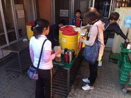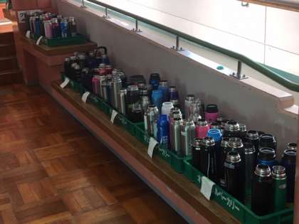 朝夕の全員の水筒へのお茶入れ。結構な作業です。