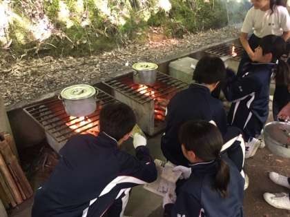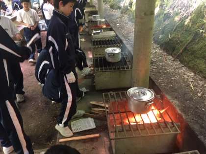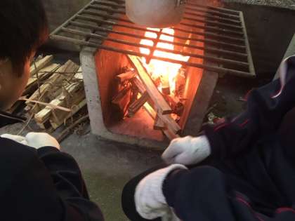 勢いよく燃えてくる炎に、見惚れる中学生たち。