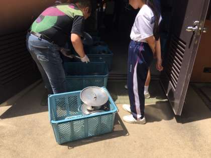 後片づけの後、食器や鍋などお借りしたものを施設の方がチェックします。きちんと洗えているか、食器の数が揃っているか等。