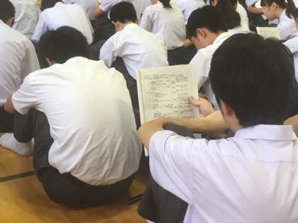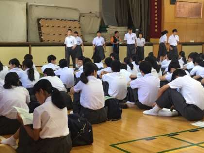 いよいよ明日から修学旅行です。5時間め、3年生は体育館に集まって事前最終連絡です。大切な事とおおまかな流れの確認をしました。今日はこれで下校します。
