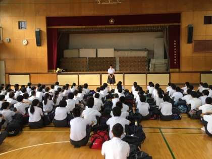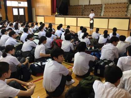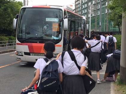 出発式で、学校長挨拶、添乗員さんと写真屋さんの紹介の後、生徒代表挨拶。順調に進んで、予定より早くバスに乗り込むことができました。