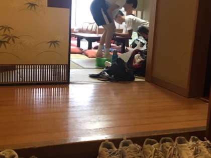 それぞれなりに、ラフティングの緊張感が疲れたようで、どの部屋もゆっくりしています。