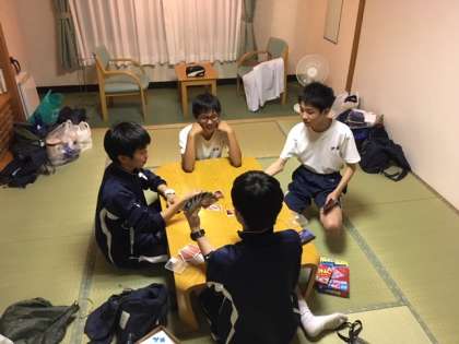 夕食後、入浴までの時間、自由時間です。各部屋でゆっくり過ごしています。