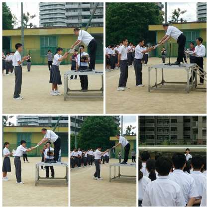 6月11日全校集会で陸上部の表彰が行われました。都島区中学生スポーツ大会ソフトボールの準優勝の表彰も行われました。