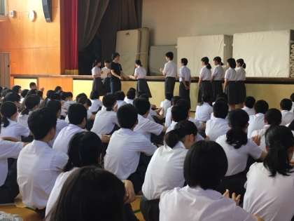 一昨日、このHPでお伝えした2年生の職場体験の壁新聞について、今朝の学年集会で表彰がありました。