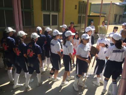 PTAの方から軍手、ゴミ袋、カナばさみを受け取って、部活動班ごとに、いざ出発!