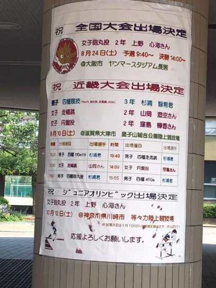 陸上部から、近畿大会・全国大会・ジュニアオリンピックへの出場が決定したので、今朝、地域の連合町会、PTA、友の会よりお越しいただいて、壮行会を行いました。
