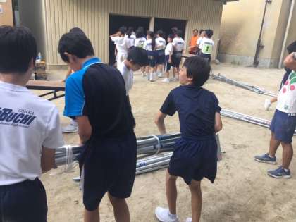 例年、テントの組み立てが時間を取ります。生徒たちが指示どおり、頭と身体をよく使ってくれたおかげで、予定時間内で終了できました。