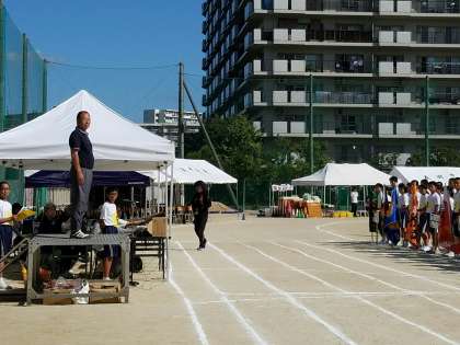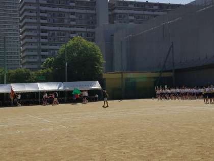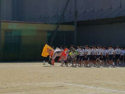 開会式が始まりました。全員元気一杯、手を振って行進します。