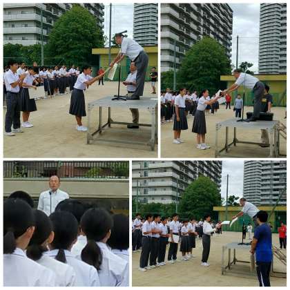 友渕中学校、部活動頑張っています。吹奏楽部の地域行事参加のことも校長先生のお話の中で触れられました。