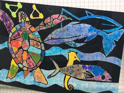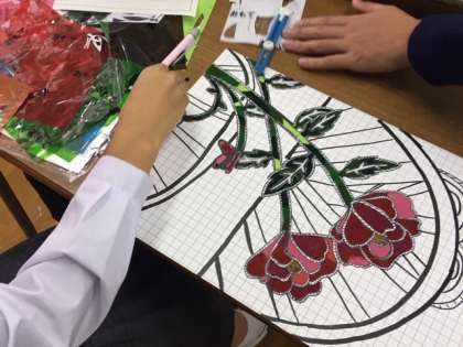 1年生の美術の授業では、「いのちのステンドグラス」制作をしています。