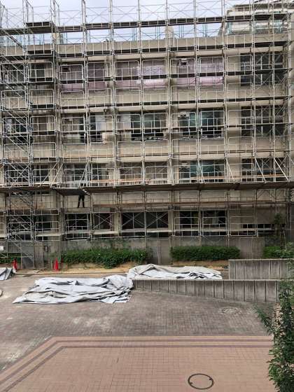 夏以降、行われていた北校舎の外壁塗装工事が一段落し、一部ですが足場の解体が始まりました。これまでカーテンに覆われていた部分が無くなり、暗かった教室に秋の光が差し込むようになりました。やはり、明るい教室はいいですね。