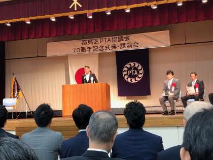 10月26日午後、都島区役所において都島区PTA協議会70周年記念事業が開催されました。当日は本校PTAからも会長初め多数参加しました。1部の70周年記念式典に続き、2部ではレモンさんこと山本シュウさんによる講演会が行われました。