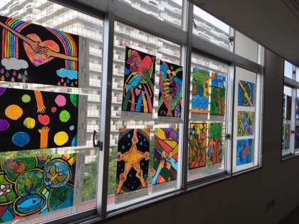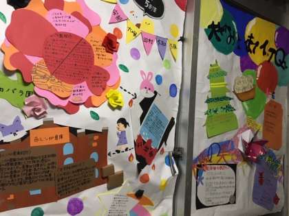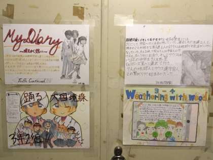 展示物は校内の廊下や教室などに展示しています。力作揃いで圧倒されるところもあるので、楽しみにしてください!