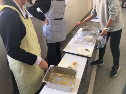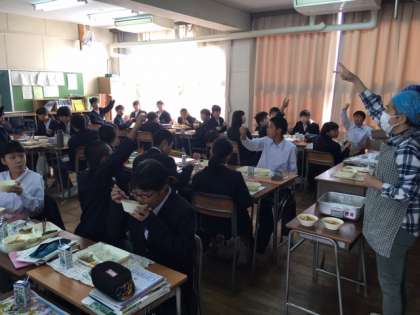 今日のメニューの豚肉の炒め物とういろうはずいぶんと人気が高かったようです。残りを再分配するのですが、ういろうは配った段階で終了。豚肉の炒め物は、希望者が担任の先生とのジャンケンで残りを再分配しました。