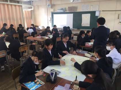 今日は小中連携の取り組みの一貫として、小学生も保護者の方と参観していただいてもいい日にしています。小学生もたくさん来てくれています。