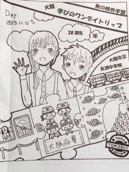 今日、1年生は校外学習「学びのワンデイトリップ」を行っています。大阪メトロのエンジョイエコカードを使って、5・6人の班ごとで大阪市内の様々な所に出かけていきます。