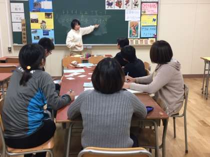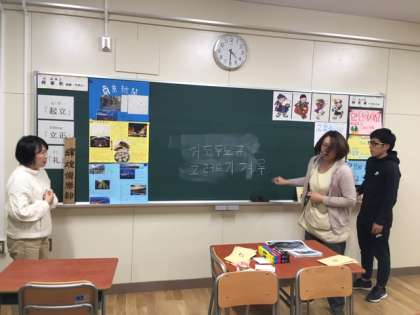 今日はハングル表記の学習を、ソンセンニム手作りのゲームを使って楽しく学びました。