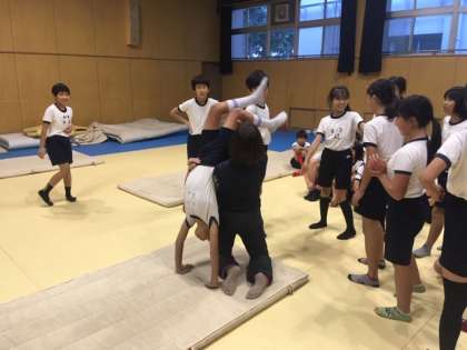 体育2コースでは、マット運動に挑戦しました。準備運動から基礎トレーニング、そして基礎的な技の練習をしました。授業の最後には、なんと、支えられながらですが、みんなバク転ができるようになりました!