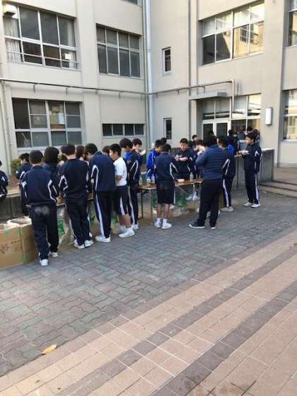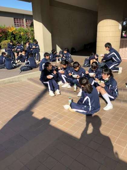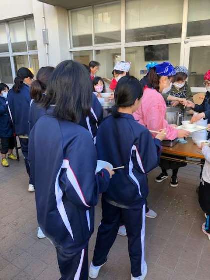 その後は、PTAのみなさんが前日より用意していただいた、約800杯分の豚汁をいただきました。具沢山で本当に美味しかったです。心も身体も温まりました。感謝・感謝の地域大清掃でした。