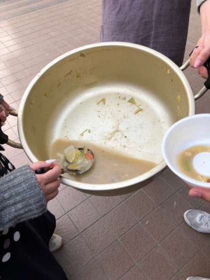晴天ながら寒空の下、みんなで食べる温かい豚汁はとても美味しかったです。