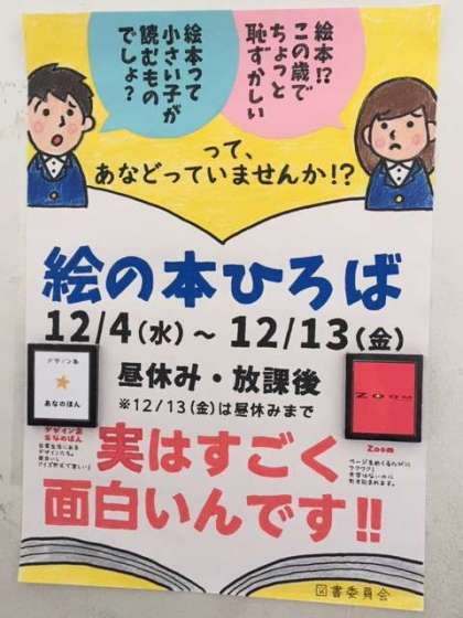 図書館に絵本をを並べる準備からポスター作りまで、図書委員会の生徒たちがたいへん活躍してくれています。