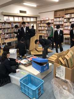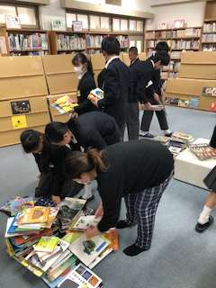 12月4日(水)から本校図書館で開催されていた絵の本ひろばが、盛況の中、フィナーレを迎えました。開催中は多くの生徒が利用し、絵本の魅力に触れることができました。12月7日の土曜日には地域の大人や園児にも来てもらうことができました。最終日の今日は、1・2年生の図書委員・PTAの人権委員・地域コーディネーター・図書委員の先生が協力して後片付けを行いました。