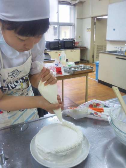 冬休み初日。家庭科クラブでは、一日遅れのクリスマス会をしました。家庭科クラブなので、自分たちのお昼ごはんとクリスマスケーキを自分たちで作りました〜!