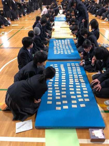 1月21日(火)の6限に、24日(金)に行われる、百人一首大会のリハーサルが行われました。本番さながらに、班分け・移動・準備などの練習を行いました。これで、当日はかなりスムーズに進行ができることでしょう。残り3日でどれだけ、歌を憶えられるかが勝負ですね。