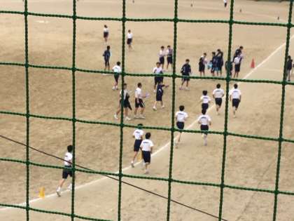 4時間めの2年生の体育の授業。男子は1,500メートル、女子は1,000と2,500メートルを走っていました。この時期、持久走を継続して取り組んでいるので、全ての生徒が完走できるようになっています。
