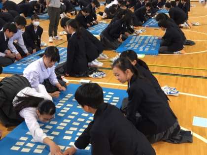 みんな、これまで練習をしてきた成果もあって、ずいぶんと高度な接戦が繰り広がっています。上の句が詠まれている時に札を取れるつわものも結構いました!