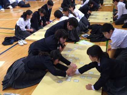 先生が「上の句」を詠んでいる時に、サッと札を取るツワモノも結構いて、なかなかの見応えのある百人一首大会となりました。
