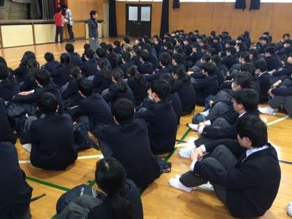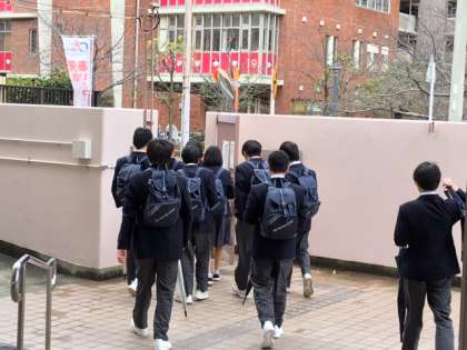 今日の午後、三年生は私学の出願に行きました。早めに昼食を済ませて、出願する学校ごとにまとまって出発しました。