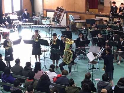 祝日の今日、毎年恒例の吹奏楽部のアンサンブルコンサートか始まりました。
