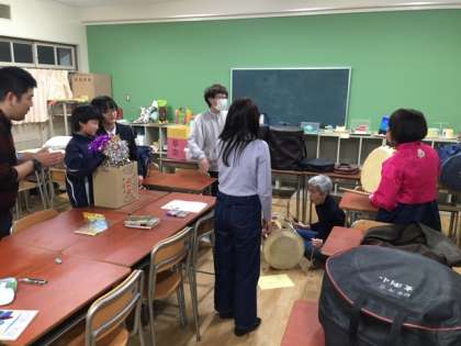 今日は国際クラブ・ピンナリクンジ活動日です。来週、一年生の取り組みで、全員が韓国・朝鮮の楽器や遊びを体験します。そのお手本のための練習をしました。