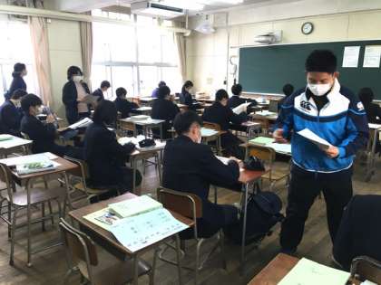 次の登校日は、3月23日です。翌24日は修了式を行います。時間と詳細は本日、生徒の皆さんにお知らせのプリントを配布しました。このホームページでも、概略をお伝えいたします。